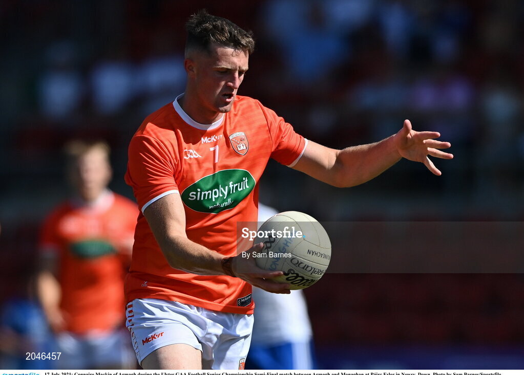 17 July 2021; Connaire Mackin of Armagh during the Ulster GAA Football Senior Championship Semi-Final match between Armagh and Monaghan at Páirc Esler in Newry, Down. Photo by Sam Barnes/Sportsfile