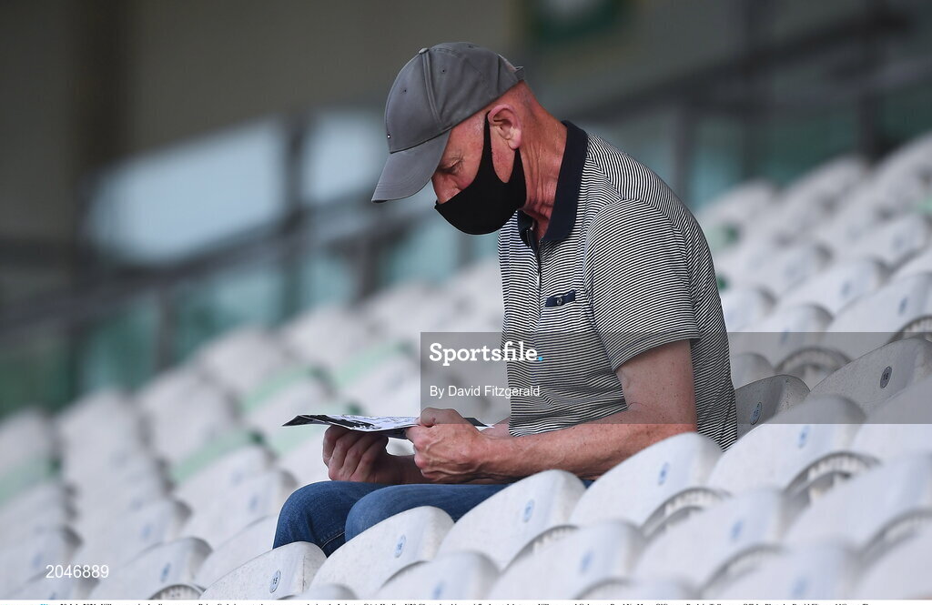 20 July 2021; Kilkenny senior hurling manager Brian Cody inspects the programme during the Leinster GAA Hurling U20 Championship semi-final match between Kilkenny and Galway at Bord Na Mona O'Connor Park in Tullamore, Offaly. Photo by David Fitzgerald/Sportsfile