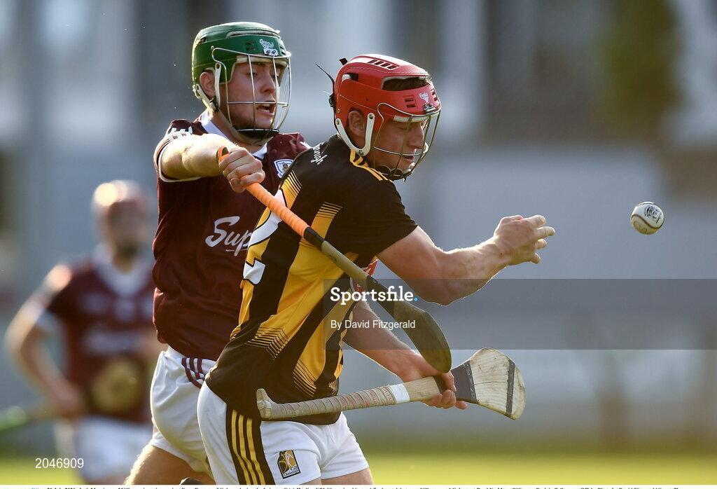 20 July 2021; Jack Morrissey of Kilkenny in action against Evan Duggan of Galway during the Leinster GAA Hurling U20 Championship semi-final match between Kilkenny and Galway at Bord Na Mona O'Connor Park in Tullamore, Offaly. Photo by David Fitzgerald/Sportsfile
