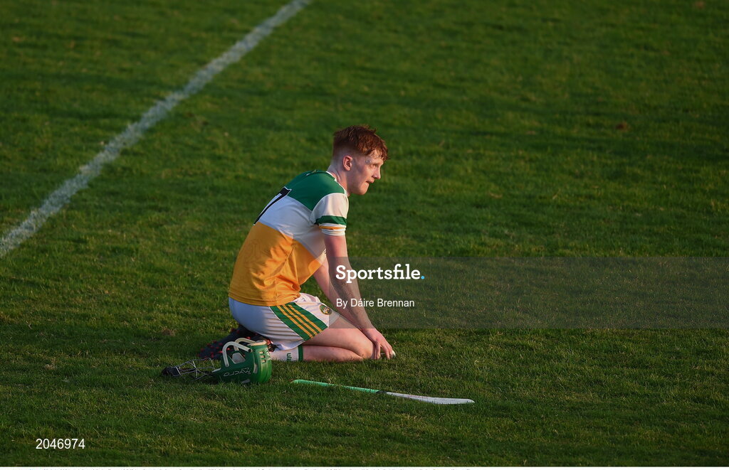 20 July 2021; A dejected Luke Egan of Offaly after the Leinster GAA Hurling U20 Championship semi-final match between Dublin and Offaly at Parnell Park in Dublin. Photo by Daire Brennan/Sportsfile