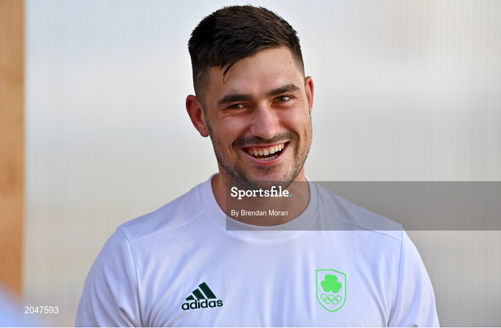 22 July 2021; Team Ireland rugby 7s player Bryan Mollen is interviewed during a media conference at the Olympic Village ahead of the start of the 2020 Tokyo Summer Olympic Games in Tokyo, Japan. Photo by Brendan Moran/Sportsfile