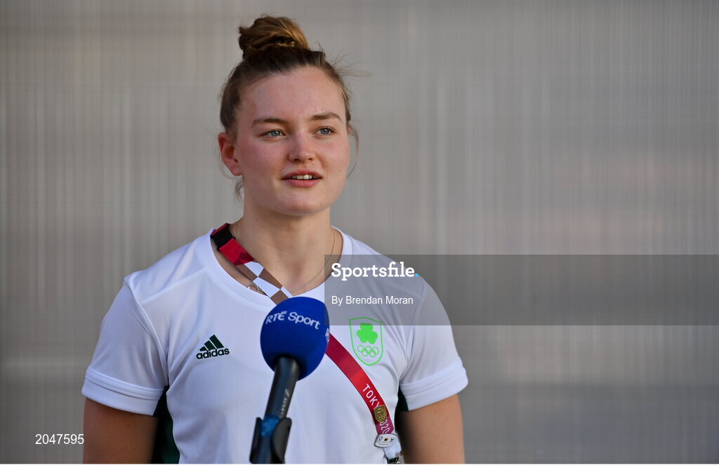 22 July 2021; Team Ireland swimmer Mona McSharry is interviewed during a media conference at the Olympic Village ahead of the start of the 2020 Tokyo Summer Olympic Games in Tokyo, Japan. Photo by Brendan Moran/Sportsfile