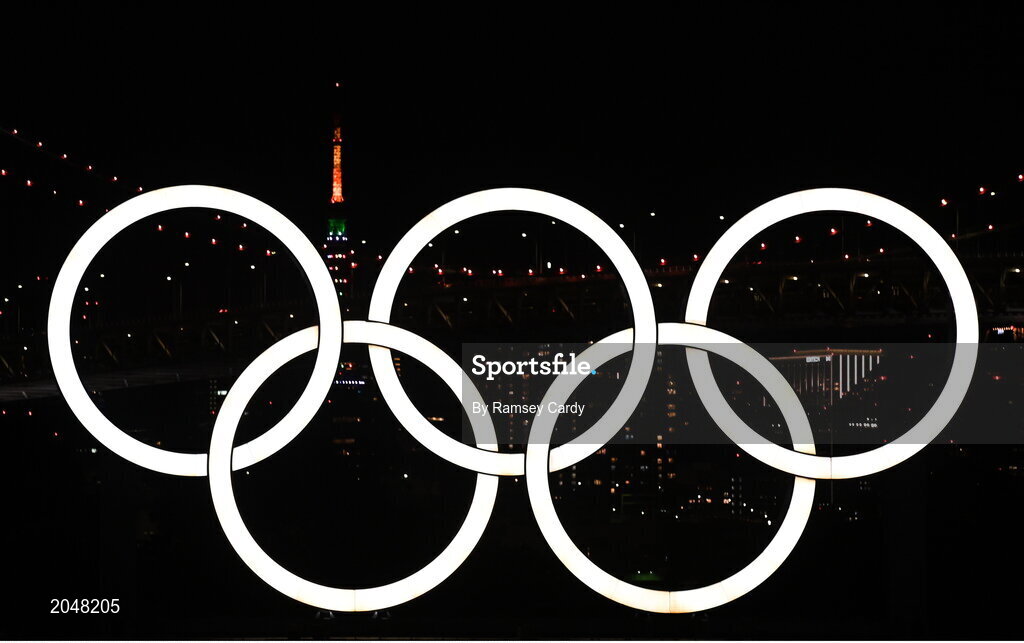 22 July 2021; A general view of the Olympic Rings at Odaiba Marine Park, under the Tokyo Tower, ahead of the start of the 2020 Tokyo Summer Olympic Games in Tokyo, Japan. Photo by Ramsey Cardy/Sportsfile