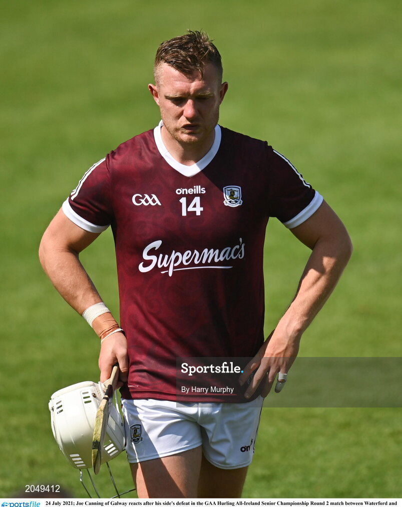 24 July 2021; Joe Canning of Galway reacts after his side's defeat in the GAA Hurling All-Ireland Senior Championship Round 2 match between Waterford and Galway at Semple Stadium in Thurles, Tipperary. Photo by Harry Murphy/Sportsfile
