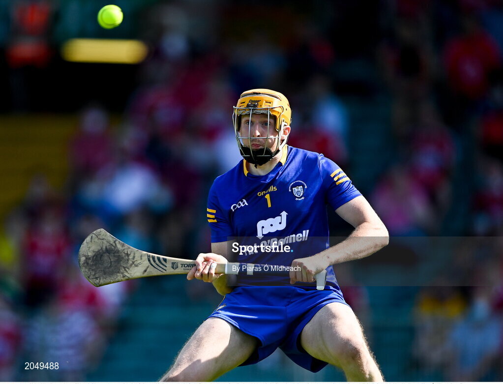 23 July 2021; Clare goalkeeper Eibhear Quilligan watches a shot from Jack O'Connor of Cork go past him for Cork's first goal during the GAA Hurling All-Ireland Senior Championship Round 2 match between Clare and Cork at LIT Gaelic Grounds in Limerick. Photo by Piaras Ó Mídheach/Sportsfile