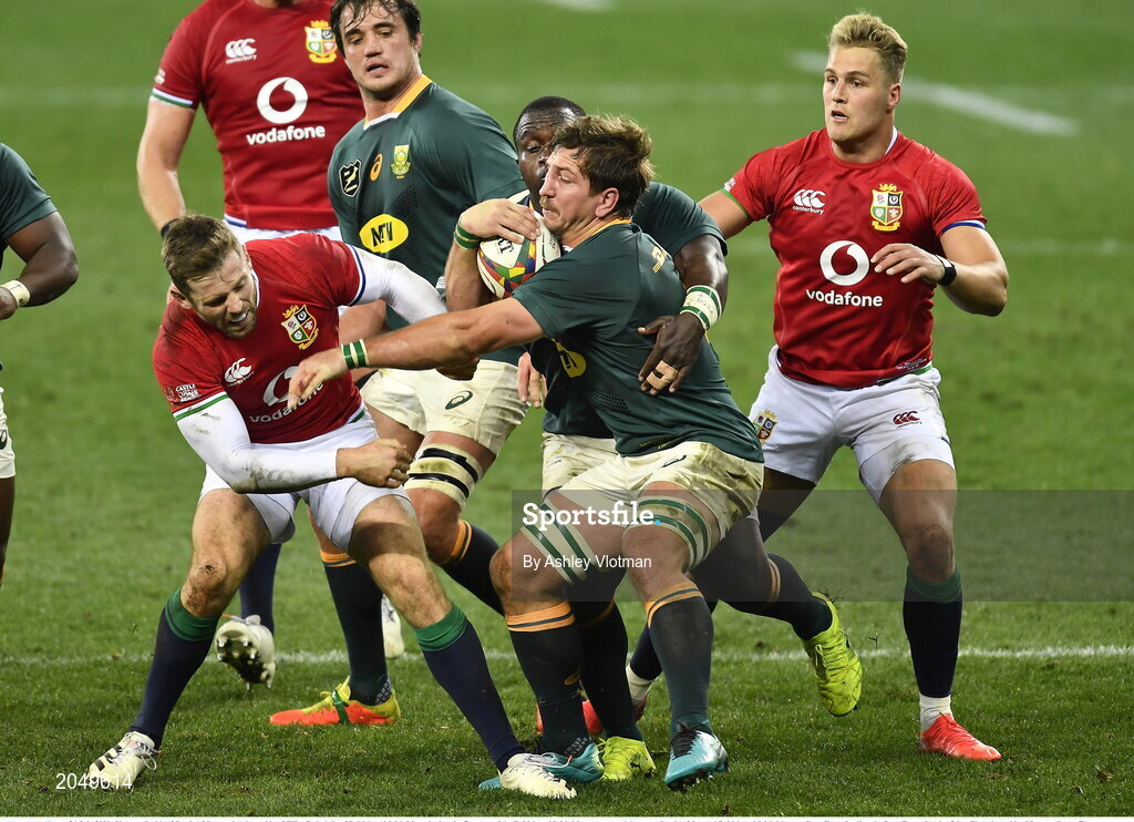 24 July 2021; Kwagga Smith of South Africa evades the tackle of Elliot Daly, left, of British and Irish Lions during the first test of the British and Irish Lions tour match between South Africa and British and Irish Lions at Cape Town Stadium in Cape Town, South Africa. Photo by Ashley Vlotman/Sportsfile