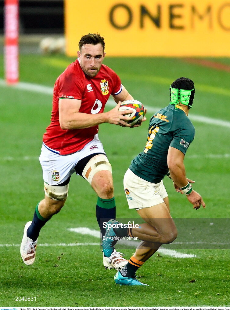 24 July 2021; Jack Conan of the British and Irish Lions in action against Cheslin Kolbe of South Africa during the first test of the British and Irish Lions tour match between South Africa and British and Irish Lions at Cape Town Stadium in Cape Town, South Africa. Photo by Ashley Vlotman/Sportsfile