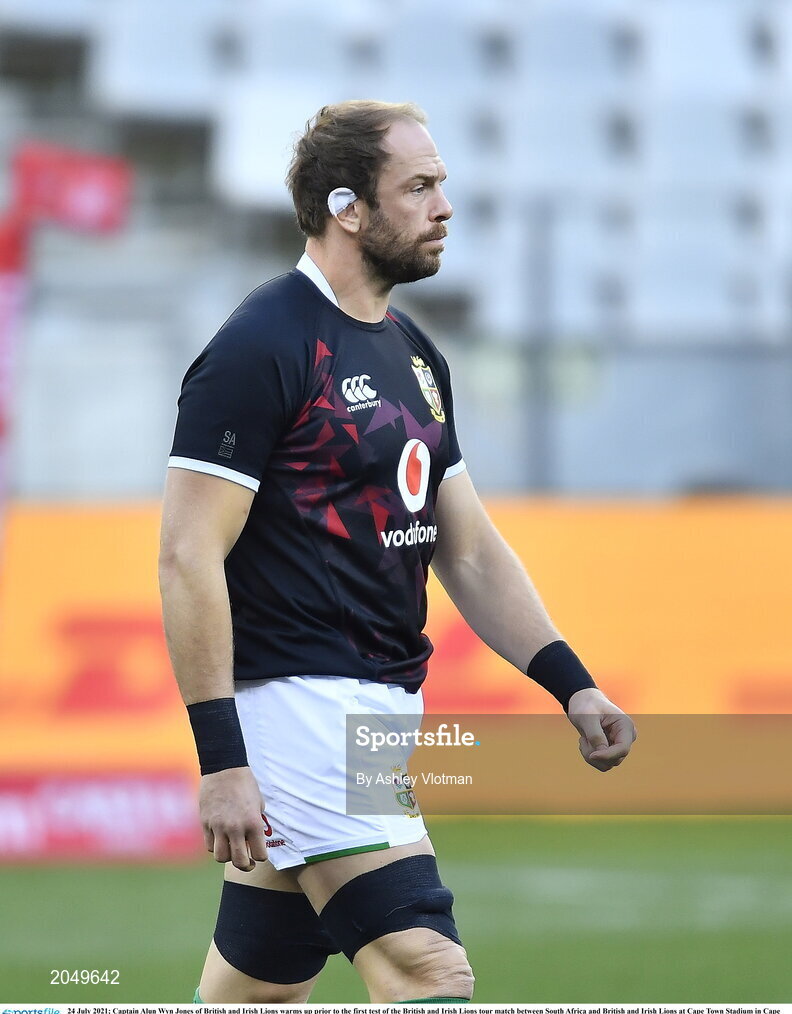 24 July 2021; Captain Alun Wyn Jones of British and Irish Lions warms up prior to the first test of the British and Irish Lions tour match between South Africa and British and Irish Lions at Cape Town Stadium in Cape Town, South Africa. Photo by Ashley Vlotman/Sportsfile