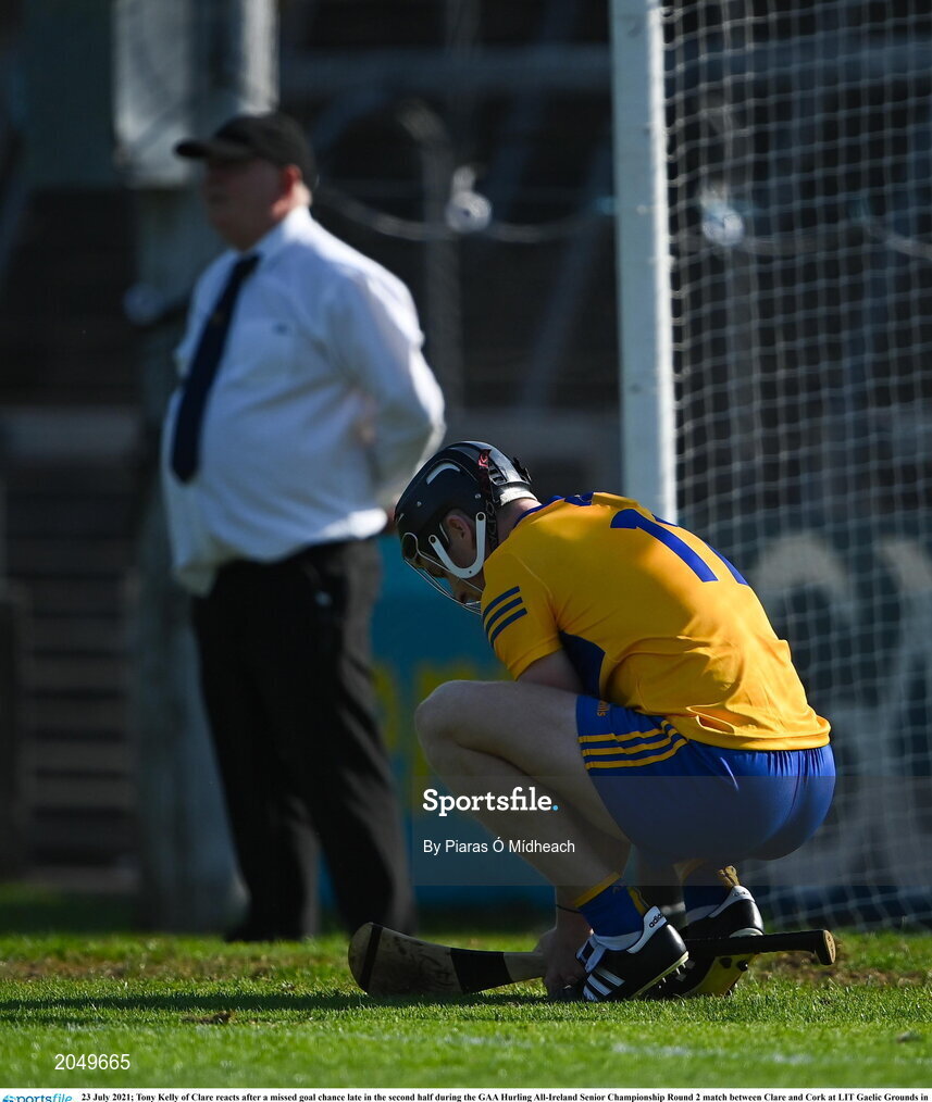 23 July 2021; Tony Kelly of Clare reacts after a missed goal chance late in the second half during the GAA Hurling All-Ireland Senior Championship Round 2 match between Clare and Cork at LIT Gaelic Grounds in Limerick. Photo by Piaras Ó Mídheach/Sportsfile