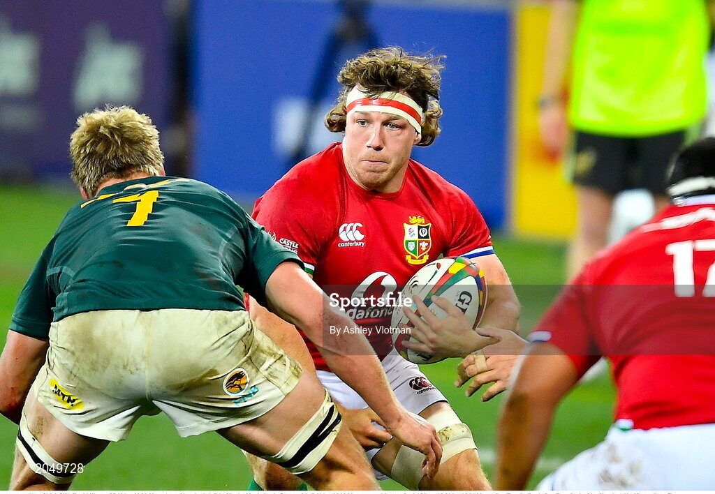 24 July 2021; Hamish Watson of British and Irish Lions takes on Pieter Steph du Toit of South Africa during the first test of the British and Irish Lions tour match between South Africa and British and Irish Lions at Cape Town Stadium in Cape Town, South Africa. Photo by Ashley Vlotman/Sportsfile