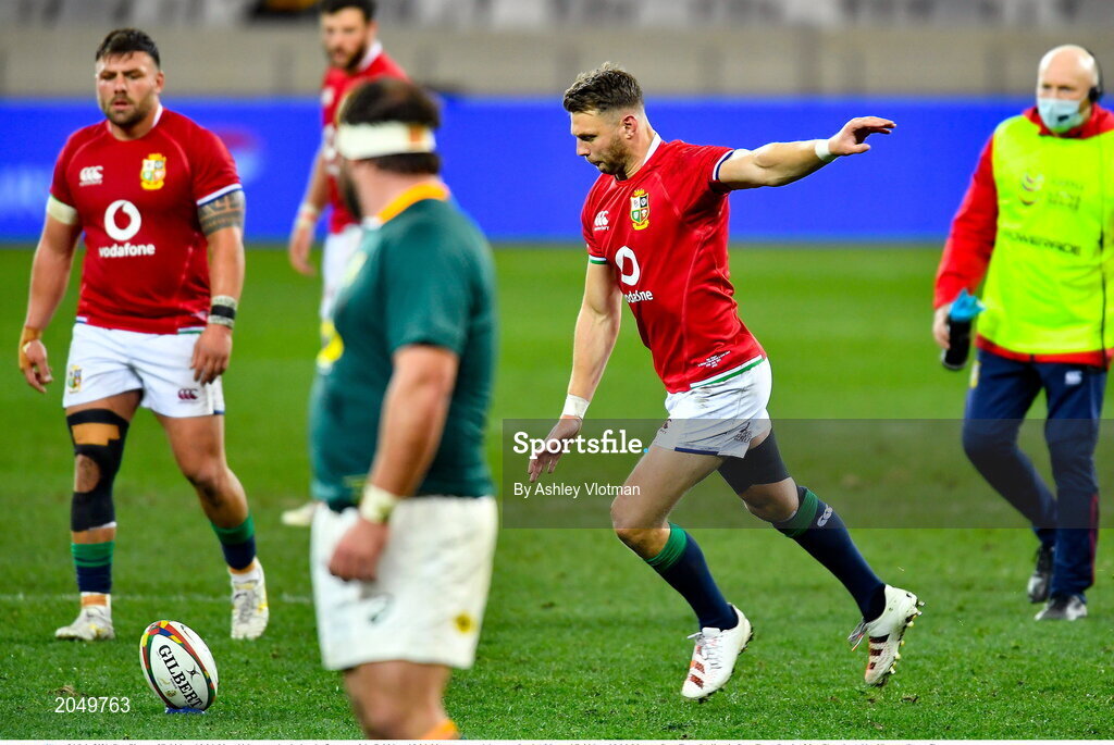24 July 2021; Dan Biggar of British and Irish Lions kicks a penalty during the first test of the British and Irish Lions tour match between South Africa and British and Irish Lions at Cape Town Stadium in Cape Town, South Africa. Photo by Ashley Vlotman/Sportsfile