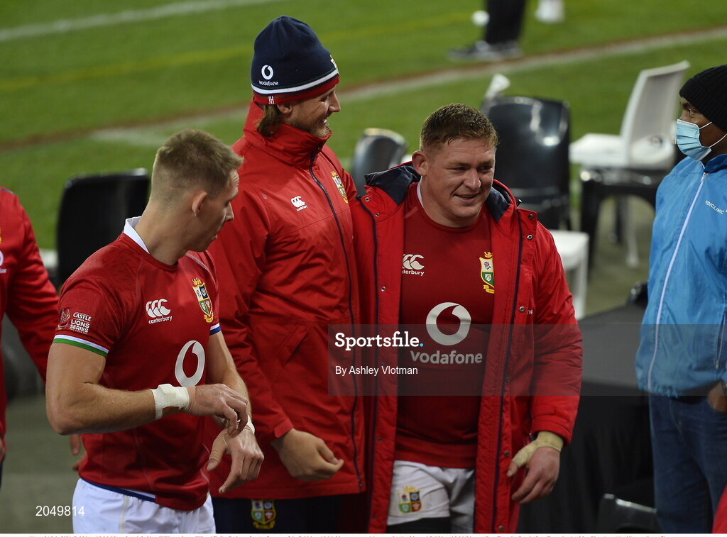 24 July 2021; British and Irish Lions, from left, Liam Williams, Jonny Hill and Tadhg Furlong after the first test of the British and Irish Lions tour match between South Africa and British and Irish Lions at Cape Town Stadium in Cape Town, South Africa. Photo by Ashley Vlotman/Sportsfile