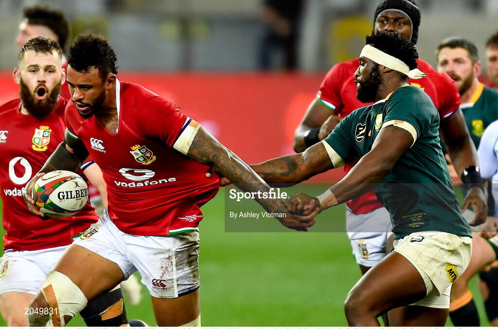 24 July 2021; Courtney Lawes of British and Irish Lions is tackled by Siya Kolisi of South Africa during the first test of the British and Irish Lions tour match between South Africa and British and Irish Lions at Cape Town Stadium in Cape Town, South Africa. Photo by Ashley Vlotman/Sportsfile