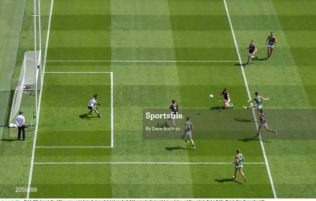25 July 2021; Conor Loftus of Mayo scores a point during the Connacht GAA Senior Football Championship Final match between Galway and Mayo at Croke Park in Dublin. Photo by Daire Brennan/Sportsfile
