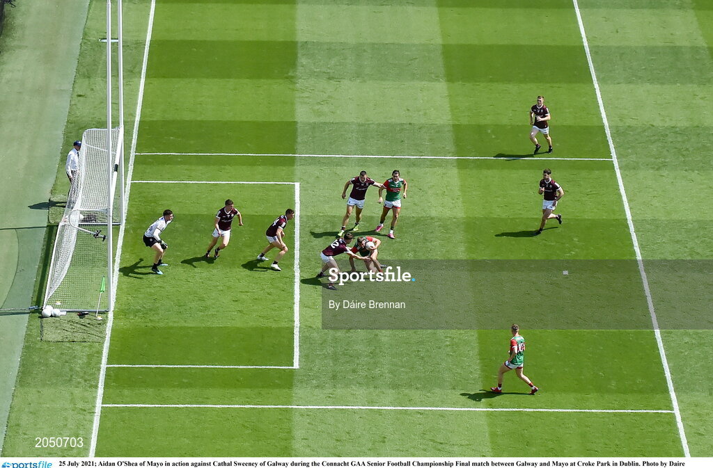 25 July 2021; Aidan O'Shea of Mayo in action against Cathal Sweeney of Galway during the Connacht GAA Senior Football Championship Final match between Galway and Mayo at Croke Park in Dublin. Photo by Daire Brennan/Sportsfile