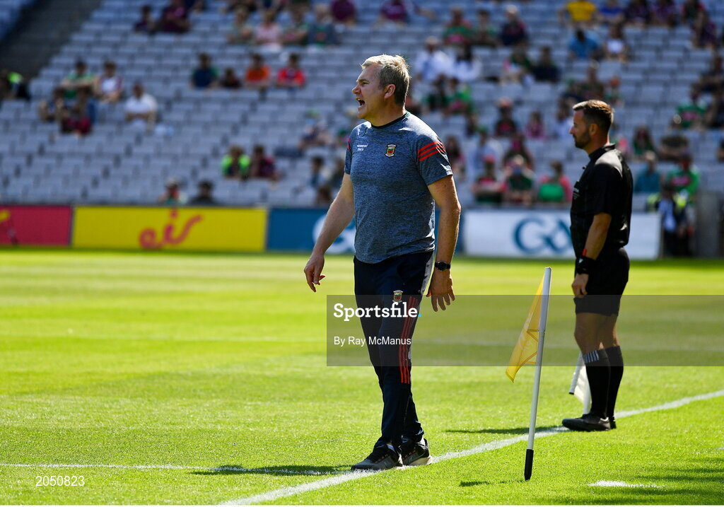 25 July 2021; Mayo manager James Horan near the end of the Connacht GAA Senior Football Championship Final match between Galway and Mayo at Croke Park in Dublin. Photo by Ray McManus/Sportsfile