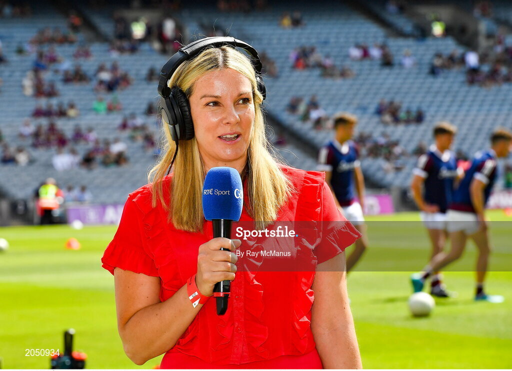25 July 2021; RTÉ presenter Marie Crowe before the Connacht GAA Senior Football Championship Final match between Galway and Mayo at Croke Park in Dublin. Photo by Ray McManus/Sportsfile