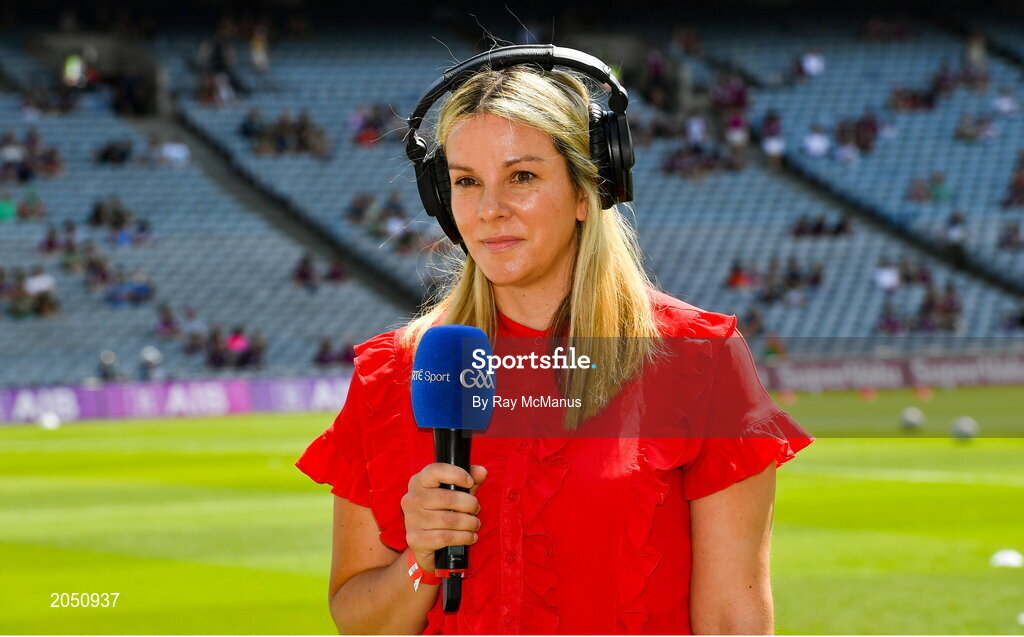 25 July 2021; RTÉ presenter Marie Crowe before the Connacht GAA Senior Football Championship Final match between Galway and Mayo at Croke Park in Dublin. Photo by Ray McManus/Sportsfile