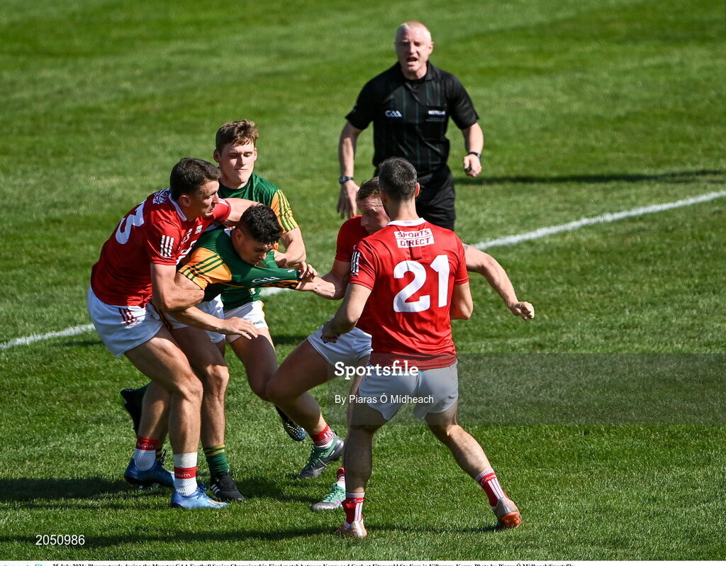 25 July 2021; Players tussle during the Munster GAA Football Senior Championship Final match between Kerry and Cork at Fitzgerald Stadium in Killarney, Kerry. Photo by Piaras Ó Mídheach/Sportsfile