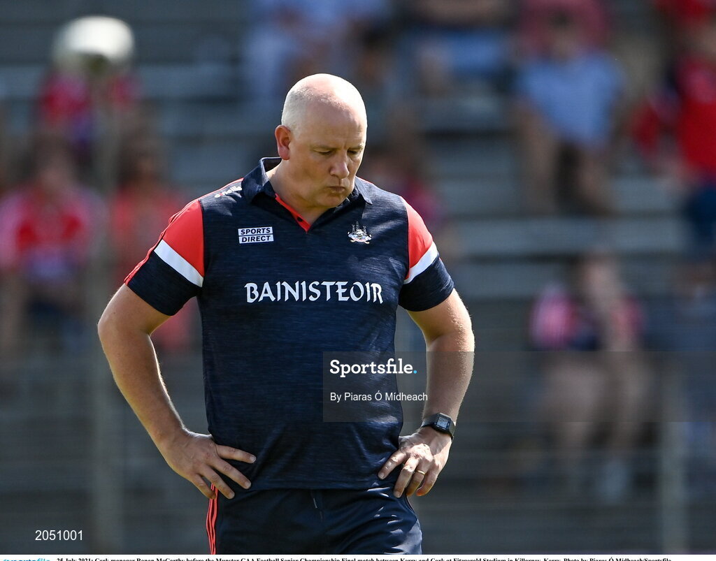 25 July 2021; Cork manager Ronan McCarthy before the Munster GAA Football Senior Championship Final match between Kerry and Cork at Fitzgerald Stadium in Killarney, Kerry. Photo by Piaras Ó Mídheach/Sportsfile