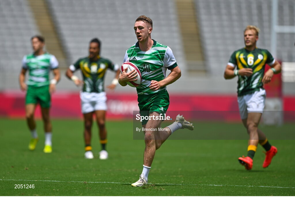 26 July 2021; Terry Kennedy of Ireland on his way to scoring his side's second try during the rugby sevens men's pool C match between Ireland and South Africa at the Tokyo Stadium during the 2020 Tokyo Summer Olympic Games in Tokyo, Japan. Photo by Brendan Moran/Sportsfile