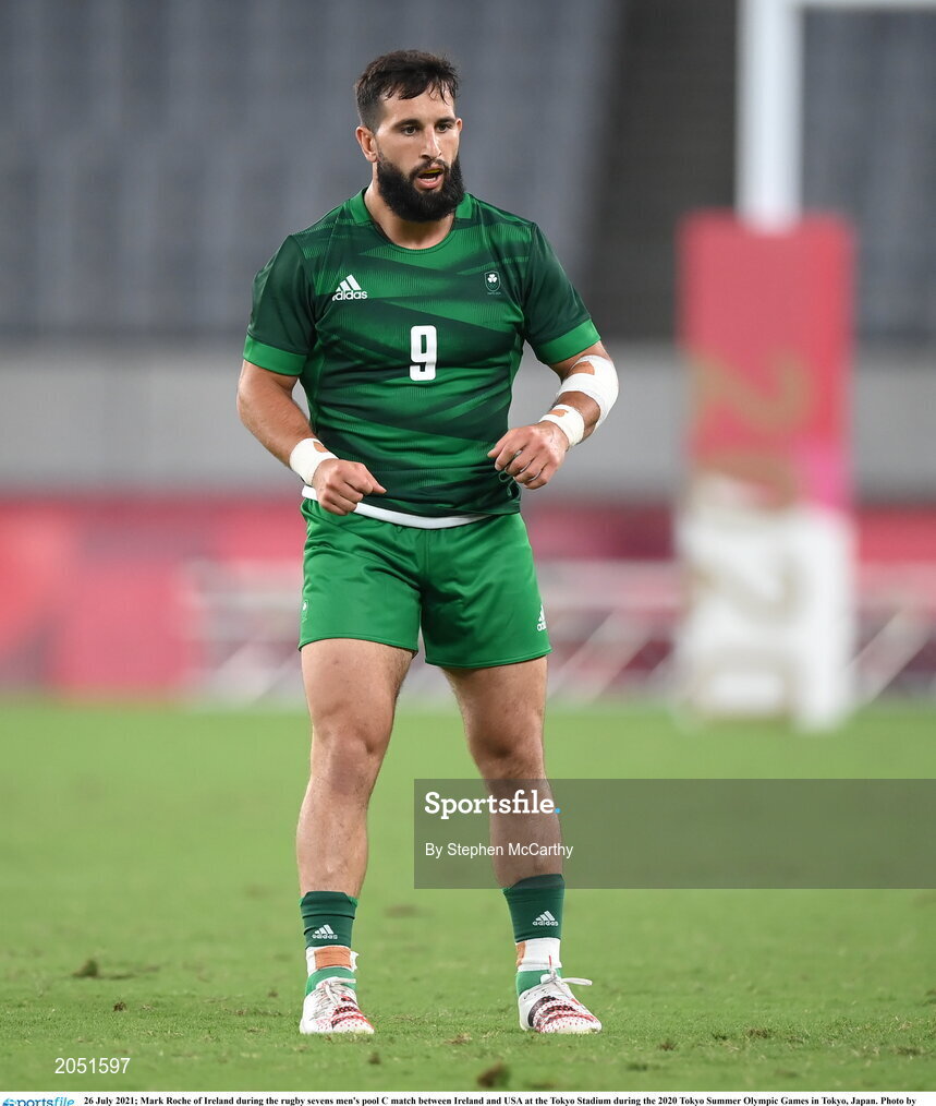 26 July 2021; Mark Roche of Ireland during the rugby sevens men's pool C match between Ireland and USA at the Tokyo Stadium during the 2020 Tokyo Summer Olympic Games in Tokyo, Japan. Photo by Stephen McCarthy/Sportsfile