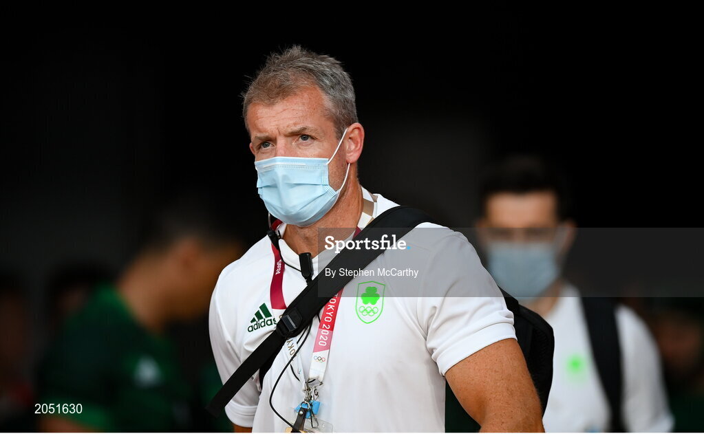 26 July 2021; Ireland assistant coach James Topping during the rugby sevens men's pool C match between Ireland and USA at the Tokyo Stadium during the 2020 Tokyo Summer Olympic Games in Tokyo, Japan. Photo by Stephen McCarthy/Sportsfile