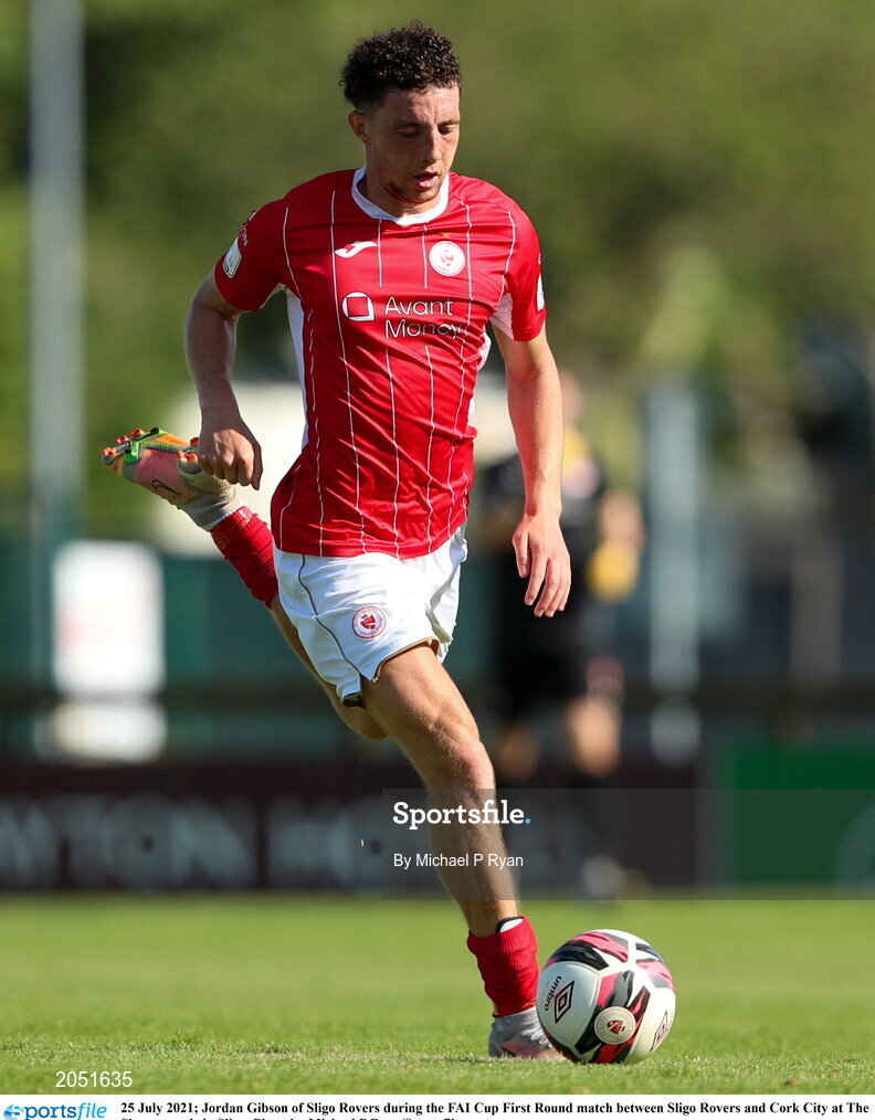 25 July 2021; Jordan Gibson of Sligo Rovers during the FAI Cup First Round match between Sligo Rovers and Cork City at The Showgrounds in Sligo. Photo by Michael P Ryan/Sportsfile