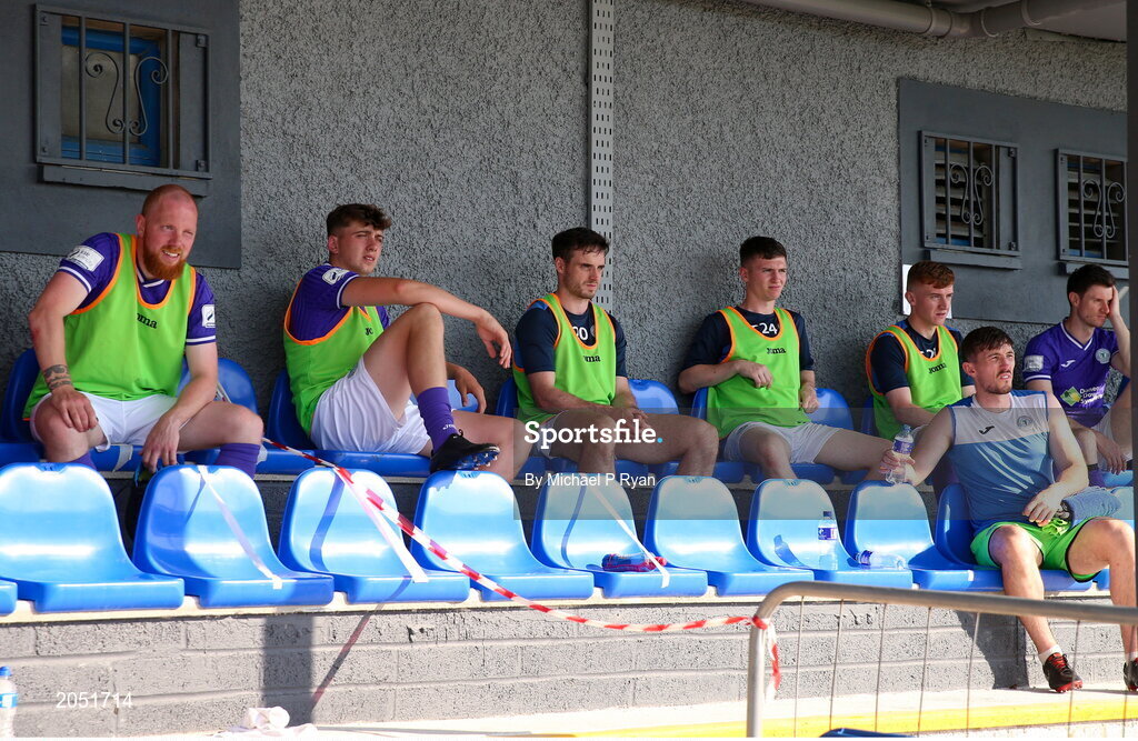 24 July 2021; A view of the Finn Harps subs bench during the FAI Cup First Round match between Fairview Rangers and Finn Harps at Fairview Rangers AFC in Limerick. Photo by Michael P Ryan/Sportsfile