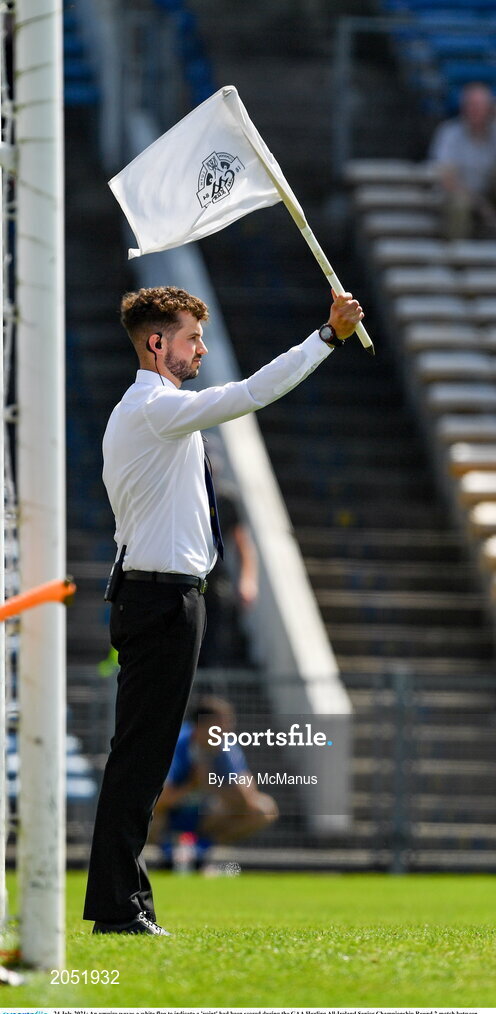 24 July 2021; An umpire waves a white flag to indicate a 'point' had been scored during the GAA Hurling All-Ireland Senior Championship Round 2 match between Waterford and Galway at Semple Stadium in Thurles, Tipperary. Photo by Ray McManus/Sportsfile