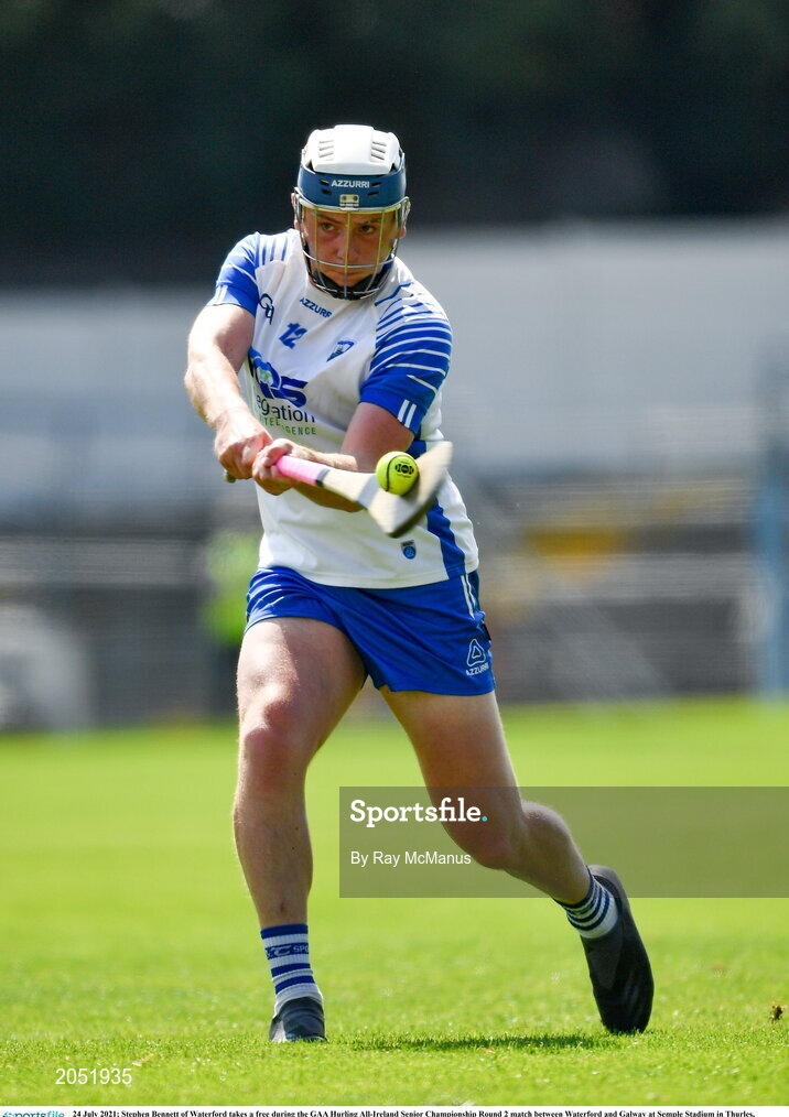 24 July 2021; Stephen Bennett of Waterford takes a free during the GAA Hurling All-Ireland Senior Championship Round 2 match between Waterford and Galway at Semple Stadium in Thurles, Tipperary. Photo by Ray McManus/Sportsfile