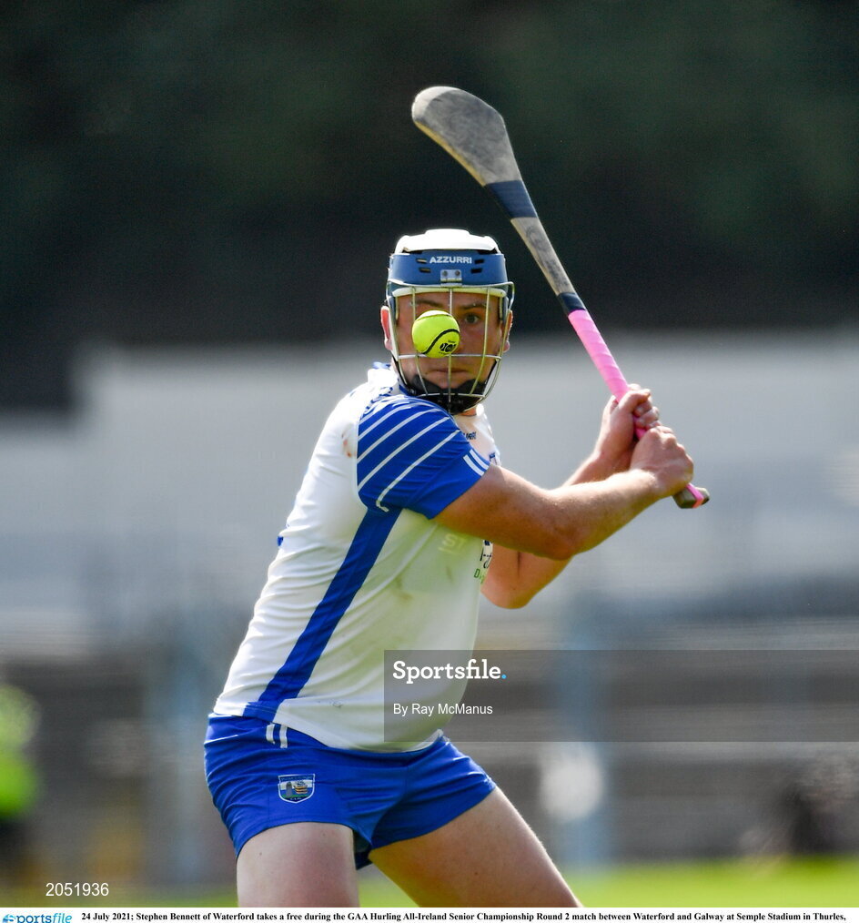 24 July 2021; Stephen Bennett of Waterford takes a free during the GAA Hurling All-Ireland Senior Championship Round 2 match between Waterford and Galway at Semple Stadium in Thurles, Tipperary. Photo by Ray McManus/Sportsfile
