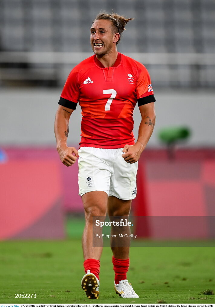 27 July 2021; Dan Bibby of Great Britain celebrates following the Men's Rugby Sevens quarter-final match between Great Britain and United States at the Tokyo Stadium during the 2020 Tokyo Summer Olympic Games in Tokyo, Japan. Photo by Stephen McCarthy/Sportsfile