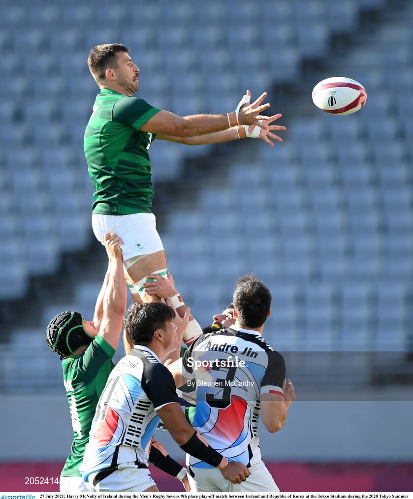 27 July 2021; Harry McNulty of Ireland during the Men's Rugby Sevens 9th place play-off match between Ireland and Republic of Korea at the Tokyo Stadium during the 2020 Tokyo Summer Olympic Games in Tokyo, Japan. Photo by Stephen McCarthy/Sportsfile