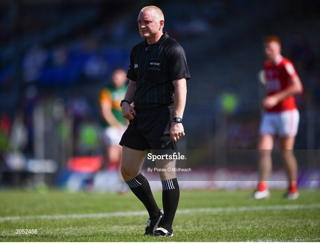 25 July 2021; Referee Barry Cassidy during the Munster GAA Football Senior Championship Final match between Kerry and Cork at Fitzgerald Stadium in Killarney, Kerry. Photo by Piaras Ó Mídheach/Sportsfile