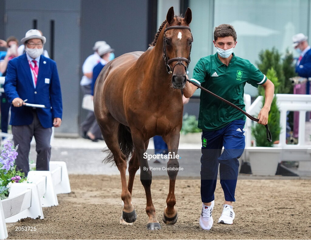 29 July 2021; Cathal Daniels and Rioghan Rua during the eventing horse inspection at the Equestrian Park during the 2020 Tokyo Summer Olympic Games in Tokyo, Japan. Photo by Pierre Costabadie/Sportsfile