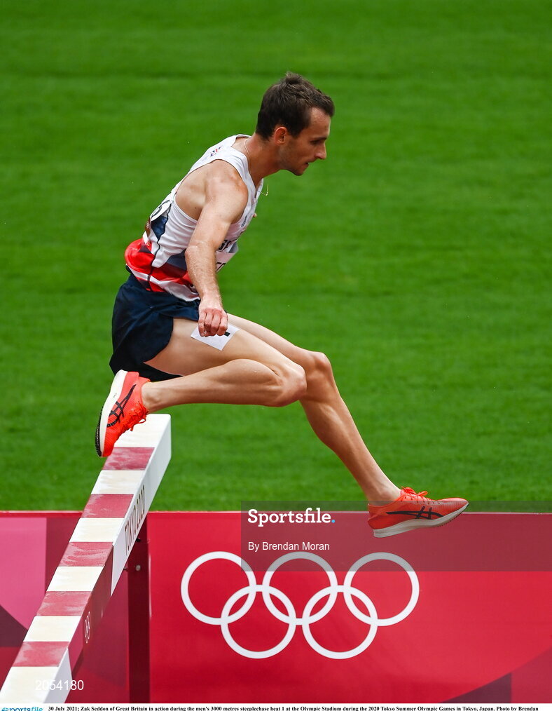 30 July 2021; Zak Seddon of Great Britain in action during the men's 3000 metres steeplechase heat 1 at the Olympic Stadium during the 2020 Tokyo Summer Olympic Games in Tokyo, Japan. Photo by Brendan Moran/Sportsfile