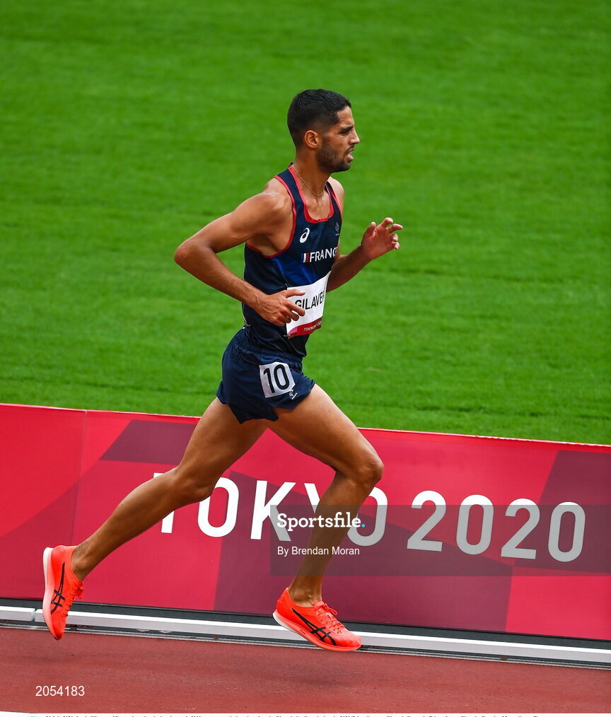 30 July 2021; Louis Gilavert of France in action during the men's 3000 metres steeplechase heat 1 at the Olympic Stadium during the 2020 Tokyo Summer Olympic Games in Tokyo, Japan. Photo by Brendan Moran/Sportsfile