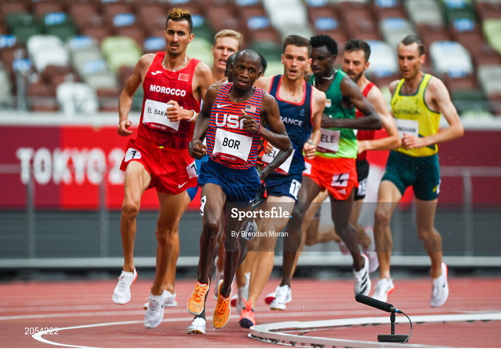 30 July 2021; Hillary Bor of USA leads the field during the men's 3000 metres steeplechase heats at the Olympic Stadium during the 2020 Tokyo Summer Olympic Games in Tokyo, Japan. Photo by Brendan Moran/Sportsfile