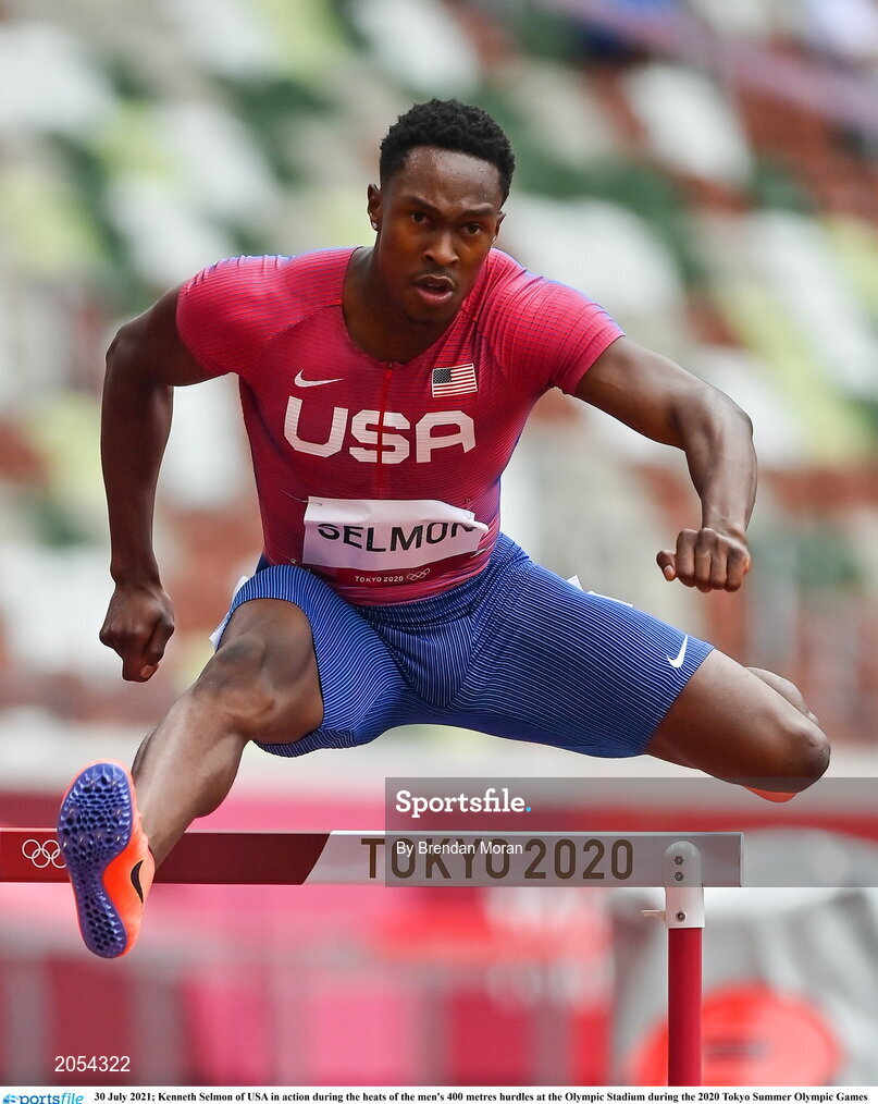 30 July 2021; Kenneth Selmon of USA in action during the heats of the men's 400 metres hurdles at the Olympic Stadium during the 2020 Tokyo Summer Olympic Games in Tokyo, Japan. Photo by Brendan Moran/Sportsfile