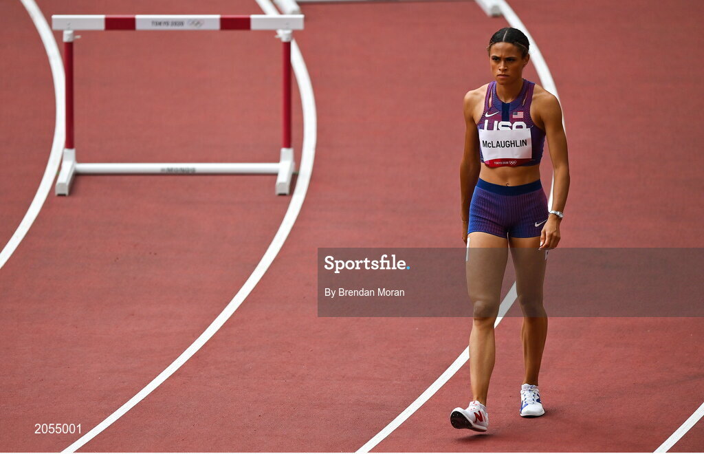 31 July 2021; Sydney McLaughlin of USA before her heat of the women's 400 metres hurdles at the Olympic Stadium during the 2020 Tokyo Summer Olympic Games in Tokyo, Japan. Photo by Brendan Moran/Sportsfile
