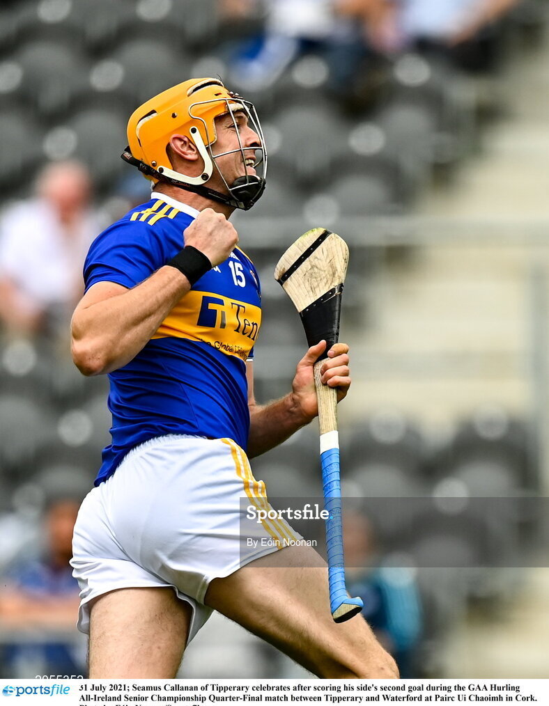 31 July 2021; Seamus Callanan of Tipperary celebrates after scoring his side's second goal during the GAA Hurling All-Ireland Senior Championship Quarter-Final match between Tipperary and Waterford at Pairc Ui Chaoimh in Cork. Photo by Eóin Noonan/Sportsfile