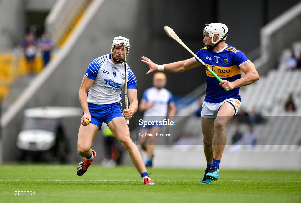 31 July 2021; Jack Fagan of Waterford in action against Padraic Maher of Tipperary during the GAA Hurling All-Ireland Senior Championship Quarter-Final match between Tipperary and Waterford at Pairc Ui Chaoimh in Cork. Photo by Daire Brennan/Sportsfile