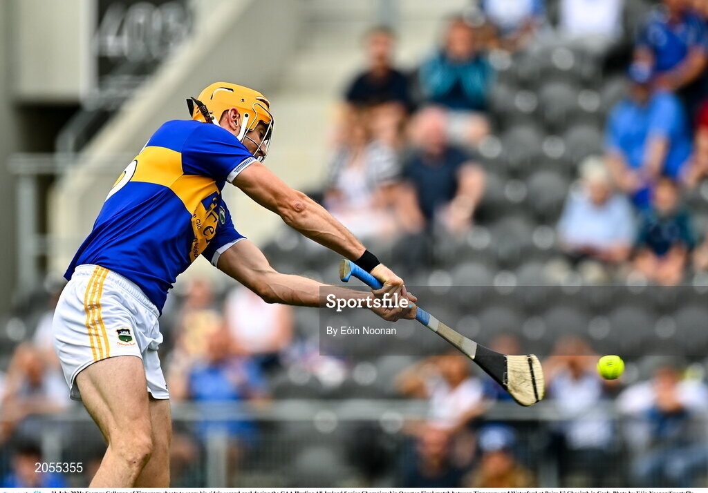 31 July 2021; Seamus Callanan of Tipperary shoots to score his side's second goal during the GAA Hurling All-Ireland Senior Championship Quarter-Final match between Tipperary and Waterford at Pairc Ui Chaoimh in Cork. Photo by Eóin Noonan/Sportsfile