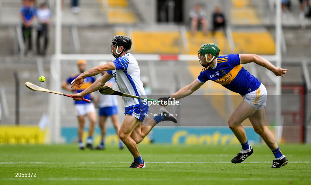31 July 2021; Jamie Barron of Waterford in action against Paddy Cadell of Tipperary during the GAA Hurling All-Ireland Senior Championship Quarter-Final match between Tipperary and Waterford at Pairc Ui Chaoimh in Cork. Photo by Daire Brennan/Sportsfile
