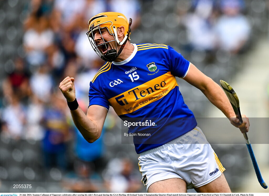 31 July 2021; Seamus Callanan of Tipperary celebrates after scoring his side's first goal during the GAA Hurling All-Ireland Senior Championship Quarter-Final match between Tipperary and Waterford at Pairc Ui Chaoimh in Cork. Photo by Eóin Noonan/Sportsfile