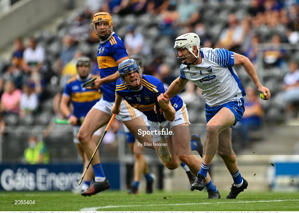 31 July 2021; Shane McNulty of Waterford in action against Jason Forde of Tipperary during the GAA Hurling All-Ireland Senior Championship Quarter-Final match between Tipperary and Waterford at Pairc Ui Chaoimh in Cork. Photo by Eóin Noonan/Sportsfile