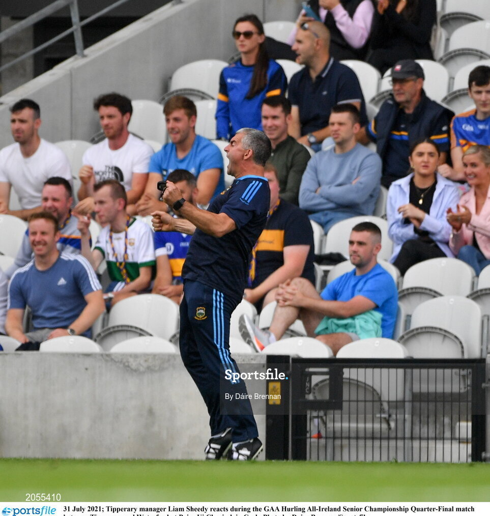 31 July 2021; Tipperary manager Liam Sheedy reacts during the GAA Hurling All-Ireland Senior Championship Quarter-Final match between Tipperary and Waterford at Pairc Ui Chaoimh in Cork. Photo by Daire Brennan/Sportsfile
