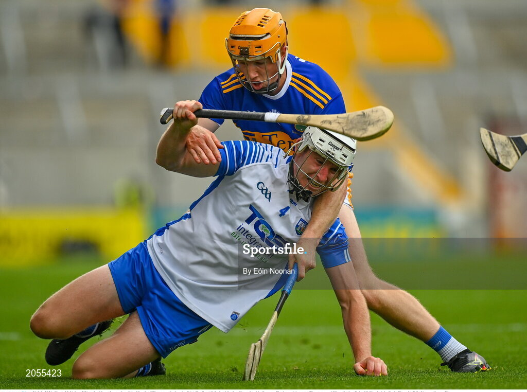 31 July 2021; Shane McNulty of Waterford in action against Jake Morris of Tipperary during the GAA Hurling All-Ireland Senior Championship Quarter-Final match between Tipperary and Waterford at Pairc Ui Chaoimh in Cork. Photo by Eóin Noonan/Sportsfile