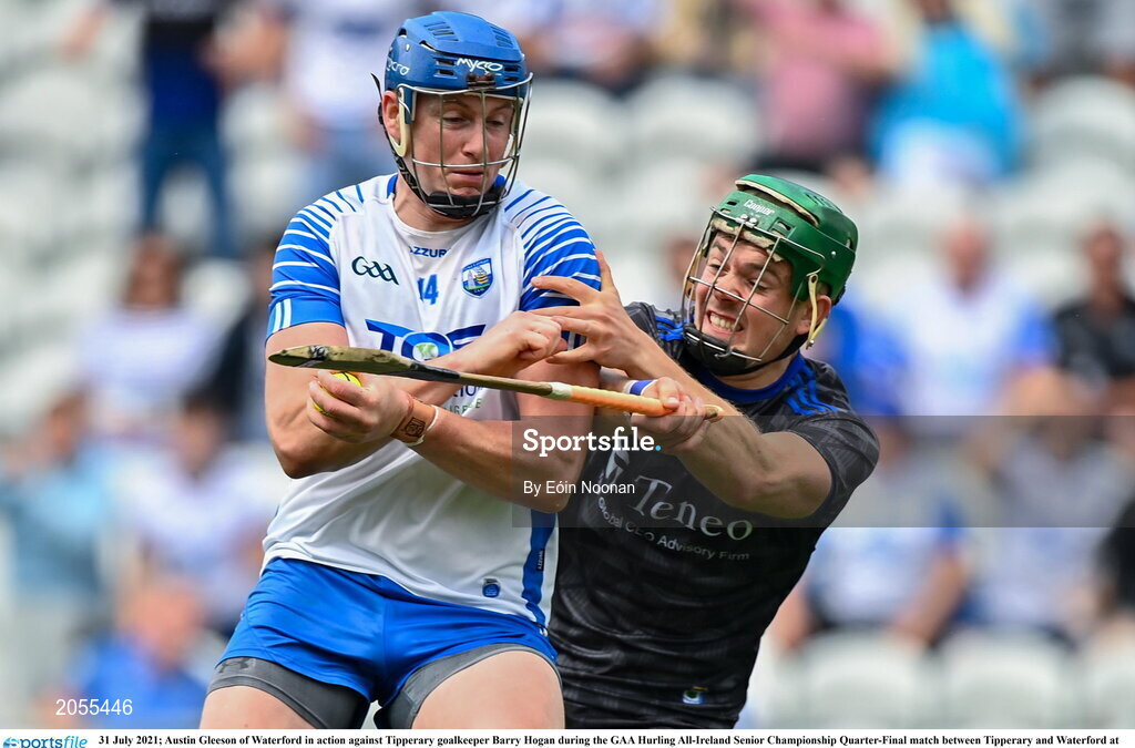 31 July 2021; Austin Gleeson of Waterford in action against Tipperary goalkeeper Barry Hogan during the GAA Hurling All-Ireland Senior Championship Quarter-Final match between Tipperary and Waterford at Pairc Ui Chaoimh in Cork. Photo by Eóin Noonan/Sportsfile